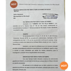 Ante los reiterados reclamos de nuestros socios, desde la UCIT presentamos una nota por mesa de entrada en la Municipalidad de Villa Gesell, solicitando
